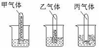 24.把分别盛满甲、乙、丙气体的试管倒插入盛有水的烧杯中,一段时间后,观察到如下图所示的现象,对甲、乙、丙气体的分析正确的是