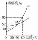 ②a、b两物质的曲线交叉点M表示的含义是 。