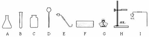 (2)在实验室用高锰酸钾制取和收集氧气时,除选用上述的B、F和H三种仪器外,还必须选择的仪器有 ① (填仪器序号),有关反应的化学方程式为 ② 。