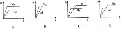 12.室温下,等质量的镁和锌分别放置在两只烧杯中,向其中分别逐滴加入质量分数相等的稀硫酸到过量,下图正确的是