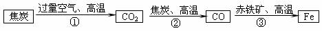 (4)炼铁厂常以焦炭、赤铁矿(主要成分是氧化铁)、空气等为主要原料炼铁,反应程如下: