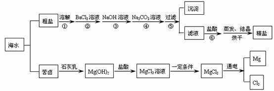 (3)在利用粗盐制备精盐过程的第⑥步操作中,加入适量盐酸的目的是__________