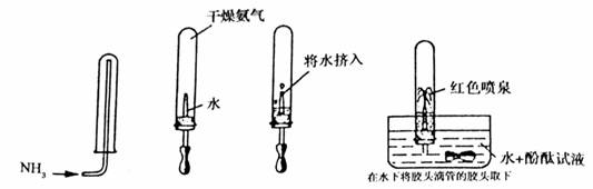 30.氨气是一种重要的化工原料,在工农业生产中有广泛的应用。某兴趣小组的同学为了探究氨气的某些性质,进行以下实验。下图中从左到右依次是实验步骤及相应的现象。