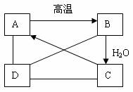 14.(6分)有A、B、C、D四种物质,如图所示,A、B、C在一定下可以发生转化,在C溶液中通入CO2,溶液变浑浊,生成白色沉淀A。D与A、B、C均能发生反应,D与C发生中和反应,D与A反应有CO2气体产生,D与AgNO3溶液反应,可产生不溶于稀硝酸的白色沉淀。