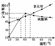 (1)40℃时硫酸钠的溶解度为 g,此时它比氯化铵的溶解度 (填:“大”或“小”)。