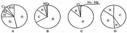 23.(4分)根据以下A、B、C、D四幅元素含量示意图,试推测元素分布领域,将图下字母序号填涂在答题卡相应位置。
