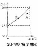 (3)B点代表20 ℃时氯化钠的溶解度为36.0g,若将满足B点指标的溶液恒温蒸发10g水,会有 g氯化钠晶体折出。