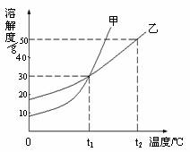 C.从0℃至t1℃时,甲物质的溶解度大于乙物质的溶解度