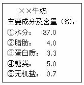 22.(4分)下图为某品牌牛奶的部分标签,请据此回答下列问题 [第(2)-(4)题用标签中的序号填写]: