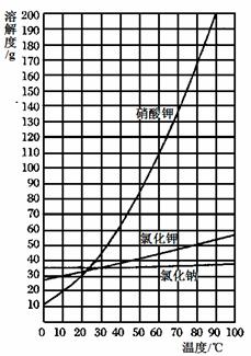 27.(9分)以下是某化学兴趣小组实施的从硝酸钾、氯化钠、氯化钾的混合物(其中氯化钠和氯化钾的质量和小于总质量的3%)中分离出硝酸钾的实验步骤:(三种物质的溶解度曲线见下图)