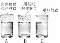 [设计实验]在A、B、C三只相同的玻璃杯中,分别注入等体积的蒸馏水,并在各玻璃杯外壁标明刻度,如图所示放置一周。