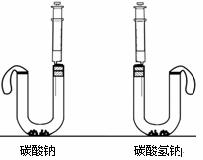 实验操作:在U型管中分别加入一定量碳酸钠和碳酸氢钠固体,在两支注射器中分别吸入同溶质质量分数、同体积的足量稀盐酸。将注射器插入橡皮塞中,然后同时迅速将盐酸分别注入U型管中。请对上述实验方案分析评价。