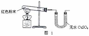 (1)甲同学取适量红色粉末装入试管中,按图1进行实验。结果无水CuSO4没有变蓝,从而排除猜想中的 。(填猜想中的序号)
