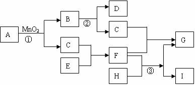 20.(9分)A-I是中学常见的几种化学物质,其中C、D、E、I是单质,E和H是黑色固体,F为无色有毒气体,I为红色固体,请你根据下图填写。