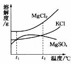 ⑵上图是MgCl2、KCl和MgSO4三种物质的溶解度曲线示意图。设t1℃时,MgCl2、KCl和MgSO4三种物质的溶解度分别为a、b、c,则它们的大小关系为_________。