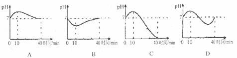 23.人体口腔内唾液的pH通常约为7,在进食过程的最初10分钟,酸性逐渐增强,之后酸性逐渐减弱,至40分钟趋于正常。与上述事实最接近的图像是