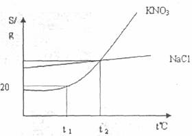 D.温度高于t2℃时,KNO3的溶解度大于NaCl的溶解度