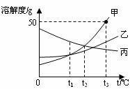 (3)t1℃时,甲、乙、丙三种物质的饱和溶液中,溶质质量分数的大小关系是______(用“甲”、“乙”、“丙”及“>”、“<”或“=”表示)。
