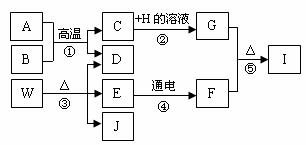 17.(8分)A-J分别为九年级化学学过的不同纯净物,它们存在下图所示的转化关系。已知A为铁锈的主要成分,E在常温下为无色液体,H的溶液呈蓝色,常温下B、D、F、J均为无色气体,其中J能使湿润的红色石蕊试纸变蓝。(反应②、④的个别生成物已略去)