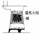 9.仔细观察在煤炉中燃烧的煤,你会发现有如下图所示的现象。请你指出在图中蓝色火焰处发生的反应的化学方程式