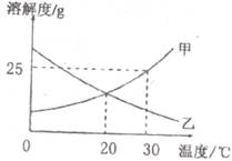 D.30℃时,乙物质的溶解度比甲物质的溶解度大