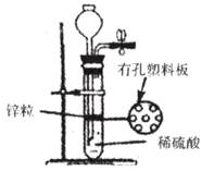 16.下图为实验室制取氢气的发生装置。若液面刚好不与锌粒接触而又无酸液可加,要得到氢气,可从长颈漏斗中加入的适量试剂是