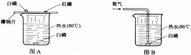 (1)用图A所示装置进行实验,观察到的现象是铜片上的白磷燃烧产生白烟:铜片上的红磷和水中的白磷不燃烧再用图B所示装置进行实验。观察到:不通氧气时,热水中的白磷不燃烧;通氧气时,热水中的白磷燃烧。根据上述实验得出,可燃物燃烧的条件是