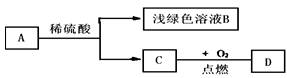 (1)写出A、D二种物质的化学式:A________、D_________。浅绿色溶液B中溶质的化学式_______________。