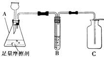(3)除按(2)进行检验外,该同学还高温煅烧摩擦剂,将产生的气体通入(2)中B、C中,发现现象和在(2)中一样,由此可推测摩擦剂是 (填化学式),请写出其煅烧的化学方程式: 。