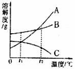 ①t2℃时,A、B、C三种物质的溶解度由大到小的顺序是____________。