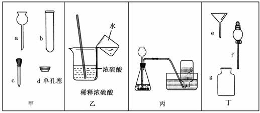 (1)连接仪器a和d,一般采取的措施是 ;(2)乙图所示的操作可能造成的后果是 ;