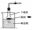 (1)该兴趣小组用干燥管、烧杯、铜网等设计装配了一个在实验室中制取二氧化碳气体的装置,如上图所示。在干燥管内的铜网上应盛放 ;若将铜网换成铁网,可能产生的后果是 ,其原因是(用化学方程式表示) 。