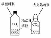 ①小明设计了甲、乙两个实验来验证CO2与NaOH发生了化学反应,如下图所示。实验现象为:甲--软塑料瓶变瘪,乙--“瓶吞鸡蛋”。