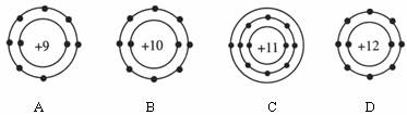 7.下列选项中代表离子的是(说明:数字代表质子数,“+”表示原子核所带的电荷,黑点代表核外电子)