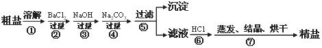 (1)在第①步粗盐溶解操作中要用玻璃棒搅拌,作用是 。