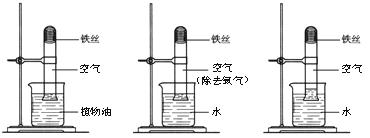 [实验内容]取3段光亮无锈的细铁丝,绕成螺旋状,放入3支干燥洁净的试管底部,进行下列实验,实验要保证有足够长的时间来观察现象。