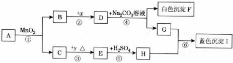 16.(13分)常温下,A、B均为液态,且组成元素相同。生活中,F可用作补钙剂。x是氧化物,y是金属。各物质间的转化关系如图所示(个别产物略去)。