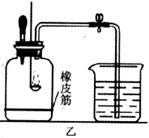 [设计与实验]将原装置改为如图乙的实验装置,烧杯和滴管中的液体为__________。 当硫磺燃烧至火焰熄灭并冷却后,打开止水夹,挤压滴管,滴入几滴液体,此时可观察到烧杯中的液体吸入集气瓶中,流入液体的体积大约在集气瓶的橡皮筋处。液体流入集气瓶中后发生反应的化学方程式为:_________________________________________________;