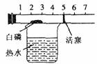 24.(4分)如下图所示,在一个具有刻度和可以左右滑动的活塞的玻璃容器里放入白磷(足量,着火点为40℃),活塞左端管内密封有空气,右端的管口跟空气连通。将玻璃容器固定在盛有80℃热水(恒温)的烧杯上,开始进行实验。试回答: