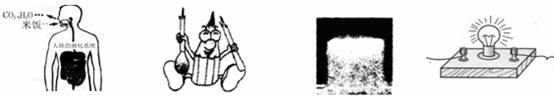 A.淀粉转化成葡萄糖 B.火柴梗被折断 C.干冰升华 D.灯泡通电发光