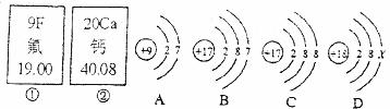 25.下图中①、②是氟元素、钙元素在元素周期表中的信息,A、B、C、D是四种粒子的结构示意图。