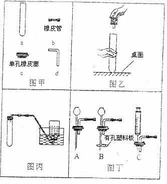 (4)图丙中的气体发生装置虽然简单,操作方便,但无法控制反应速率。请从图丁中选取_________(选填序号)与图甲中a组装或新的气体发生装置,以达到控制反应速率的目的: