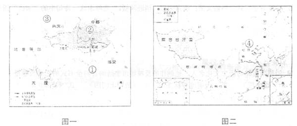 (4)在两图所反映的不同历史时期,台湾的名称及其与大陆的关系并发生了什么变化?(4分)