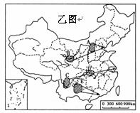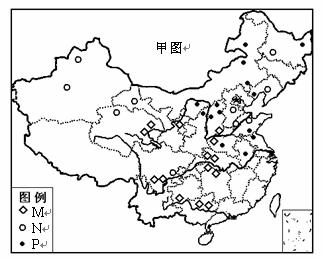 (1)甲图是我图石油、煤炭和水能的分布图,请根据其分布状况推断:图例M代表__________,主要分布在__________________________________;图例P代表__________。