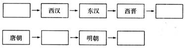 21.统一是历史发展的必然趋势。我国封建社会曾出现过许多统一的王朝,请你按照先后顺序填写在下面相应的方框内。(4分)