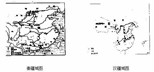 (3)、比较《秦朝疆域图》与《西汉疆域图》,写出两个朝代统治局面有什么不同?