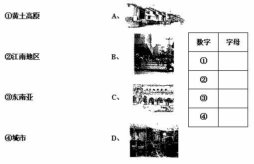 35、将下列地区与不同的建筑形式用直线连起来,并将数字对应的字母填入表格中。(4分)