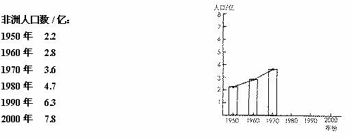 35、依据非洲人口统计数据,完成非洲的人口增长柱状折线图,并按要求填空。(6分)