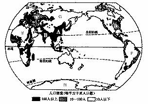 (2)人口相对稀疏的是________、________ 、________(字母),这里自然条件 ________。