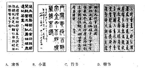 28、中国的汉字是方块字,但直到秦朝,中国才实现“书同文”字。下列文字中,属于秦朝统一后使用的官方字体是